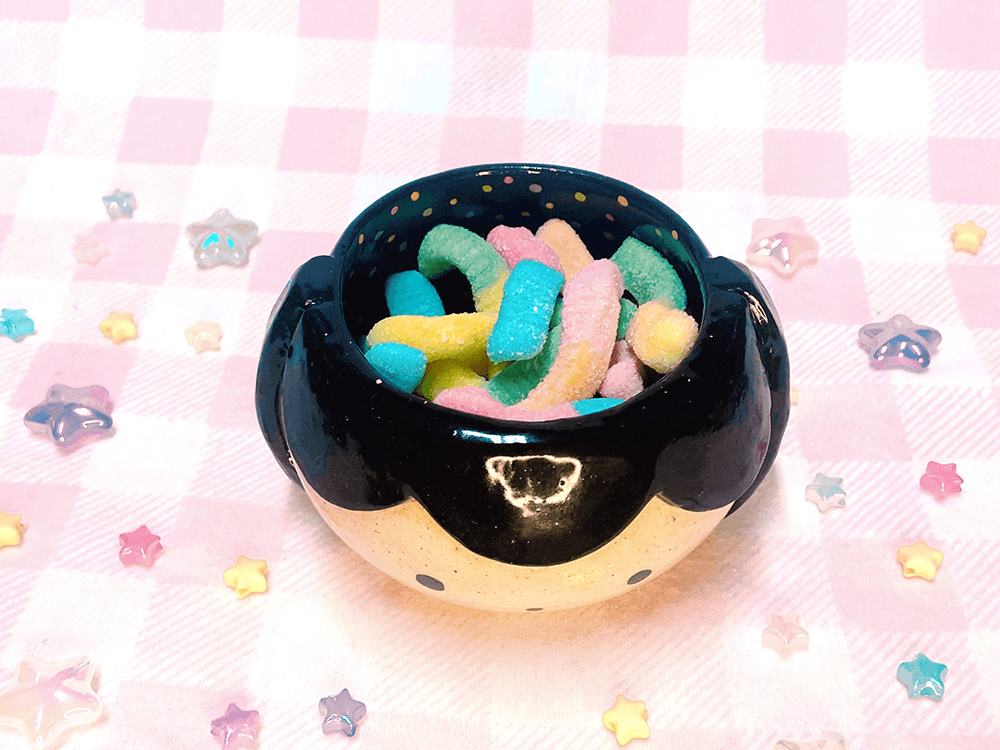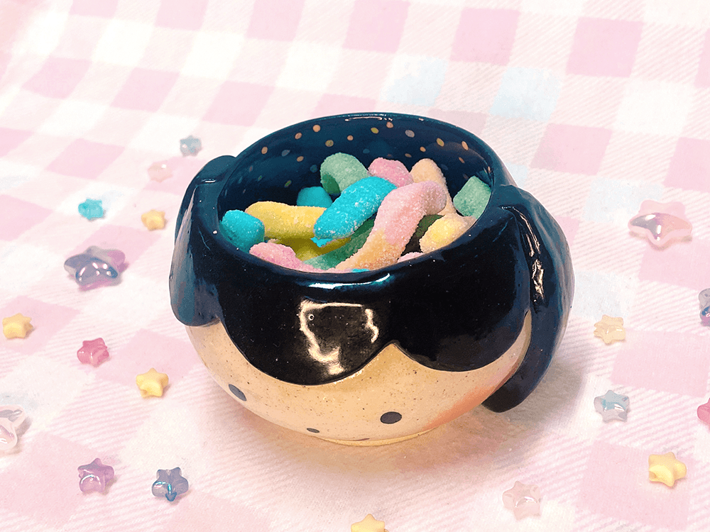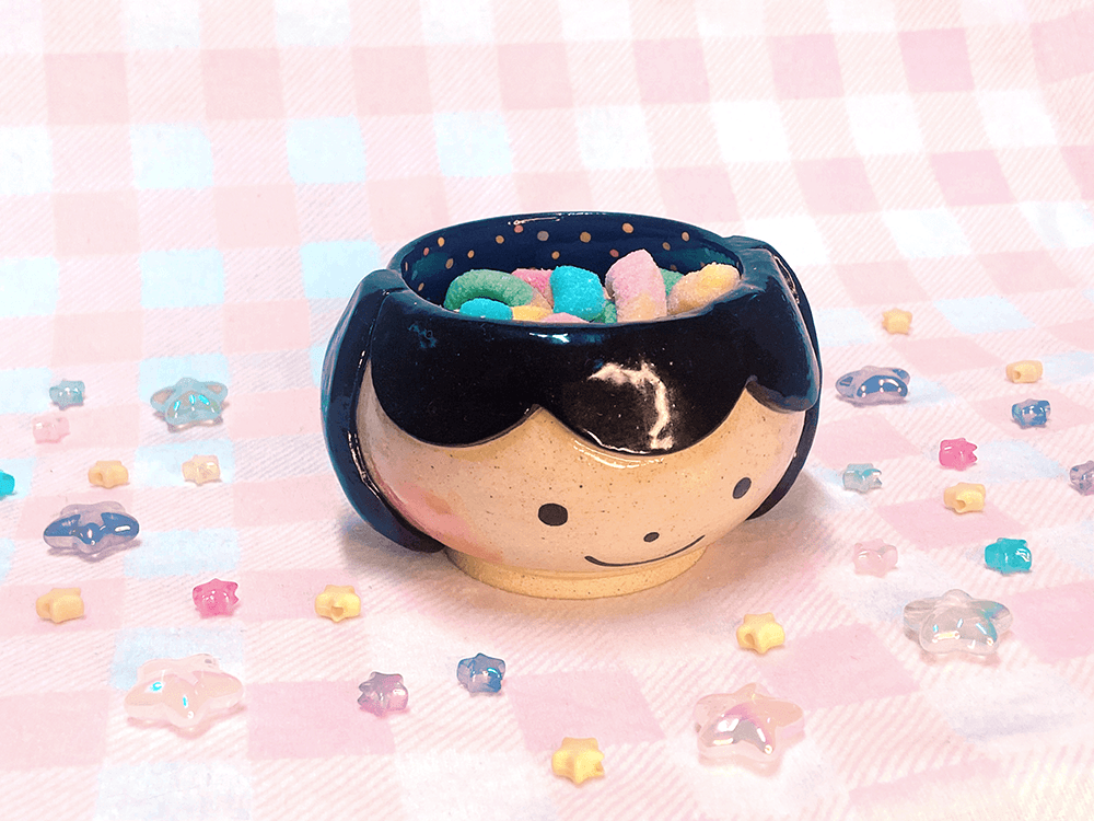 I'm gonna type up a huge thing about glazes in the near future but almost all of them were housemade at the college; some of them were made by me when i worked there :) two of them were storebought and they will be linked on the pieces that use them. They're in the descriptions of these pieces mostly for my own reference
