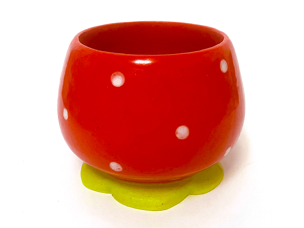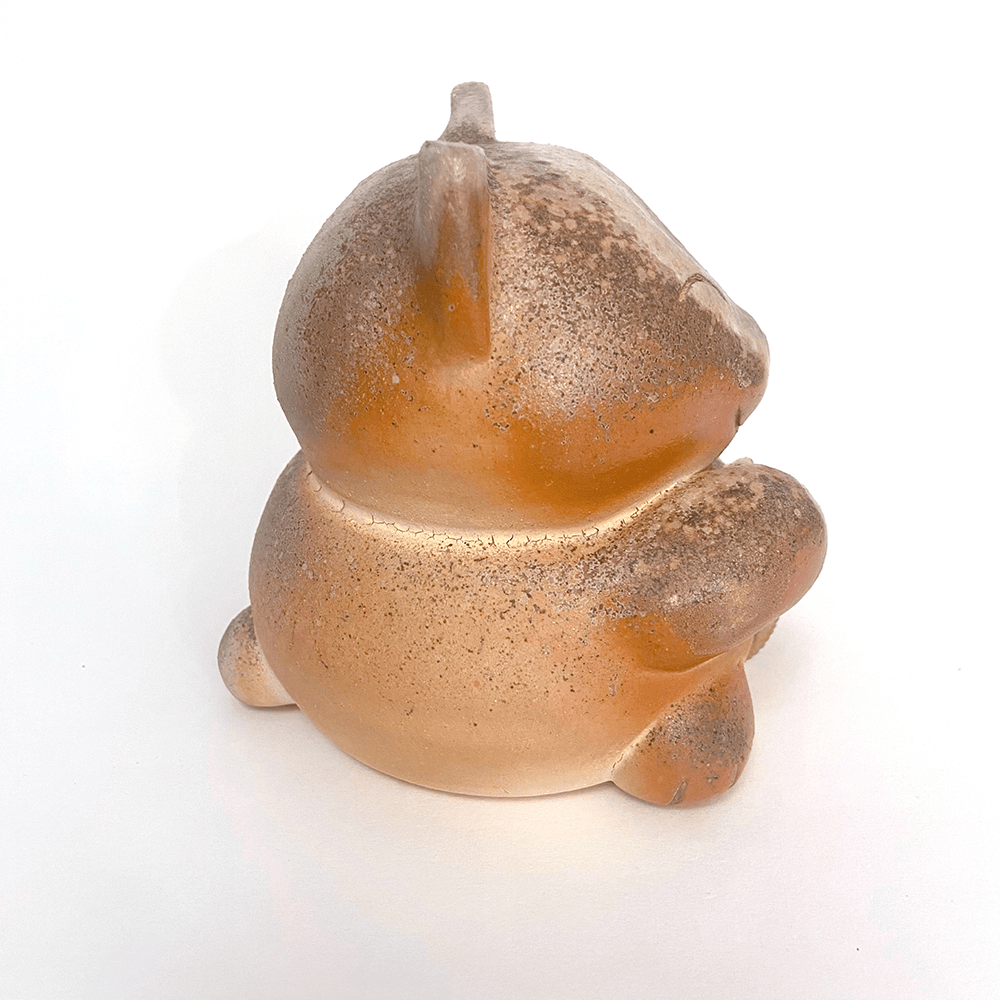 Laguna Speckled Buff, B-mix slip, Hawaiian Red slip. The small ones have Amaco Velvet underglaze for the eyes and the big one has Campfire glaze on the inside